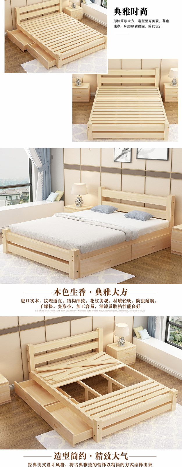 純木ベッドや収納付きベッド、折り畳みベッドなど、
