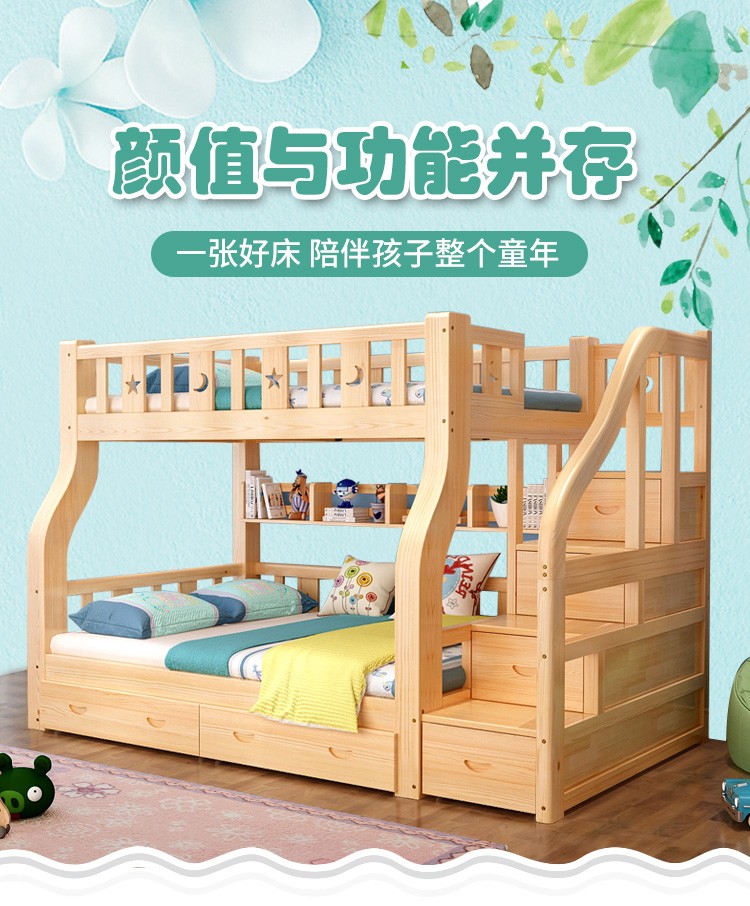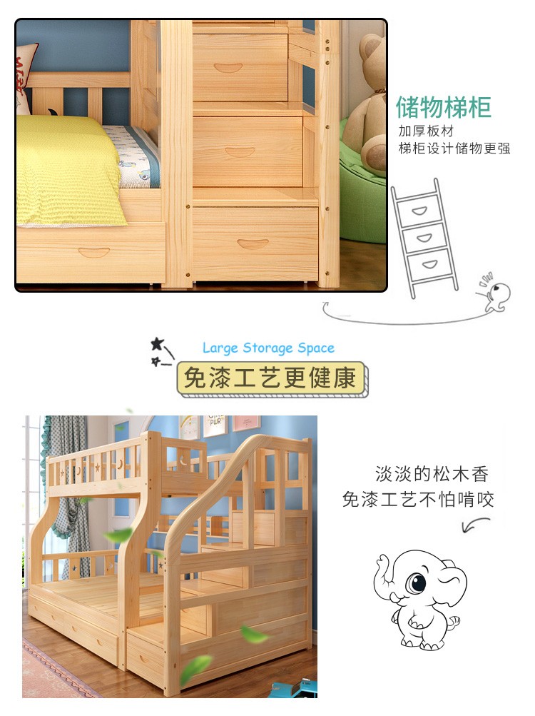 企佳【包装】純木ベド上段ダンベル免漆二層ベド二段ベド二段ベド二段ベド高低ベド松木大人ベド上段段ダンベル免漆直段ベド130下段幅150下段幅幅総幅200 cm