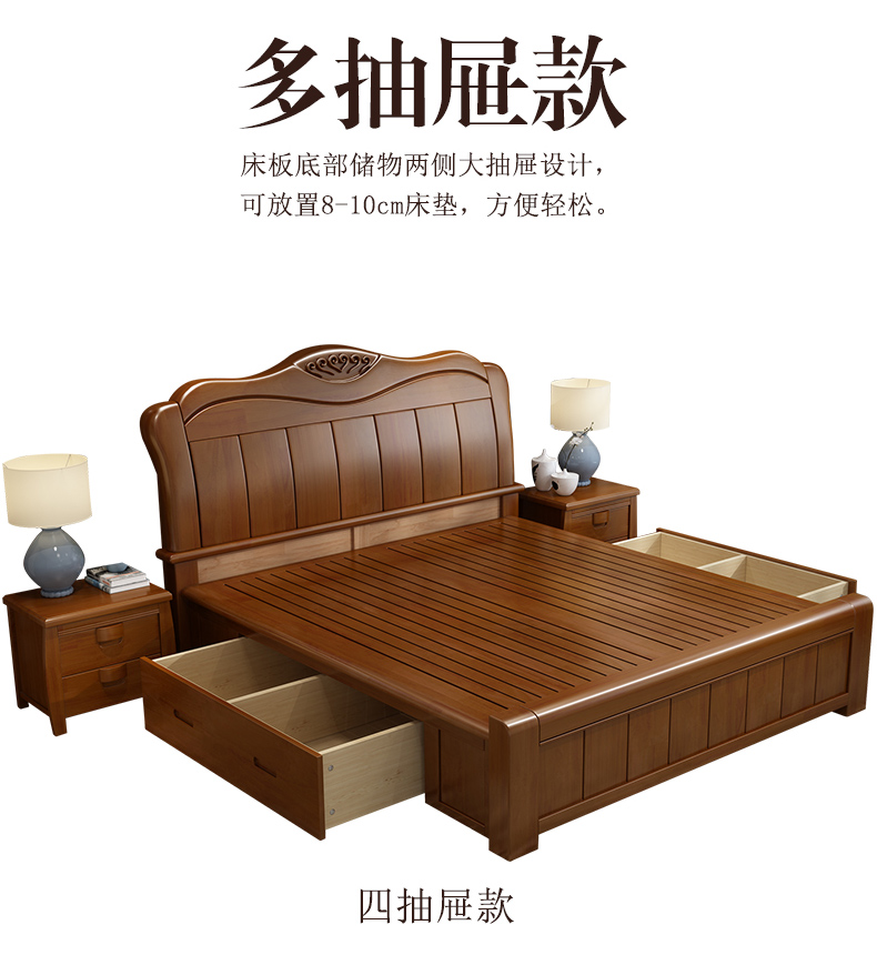 和楽郷里ベト1.8/1.5 mダンベル収纳纳纳纳纳纳纳纳纳纳纳纳纳まる中华风寝室纯木家具くみいろ纯木ベド1800 mm*2000 mm引出ベド