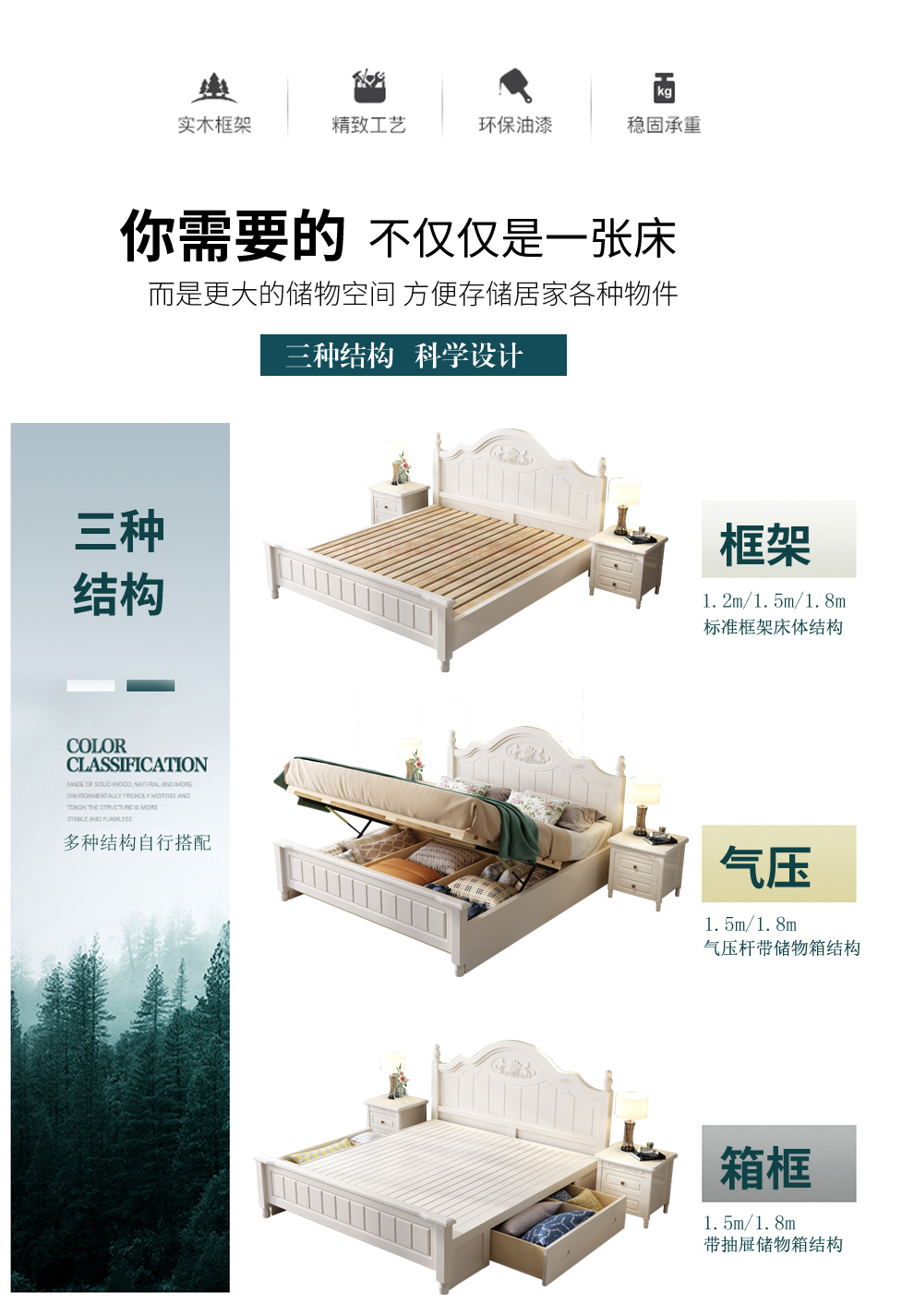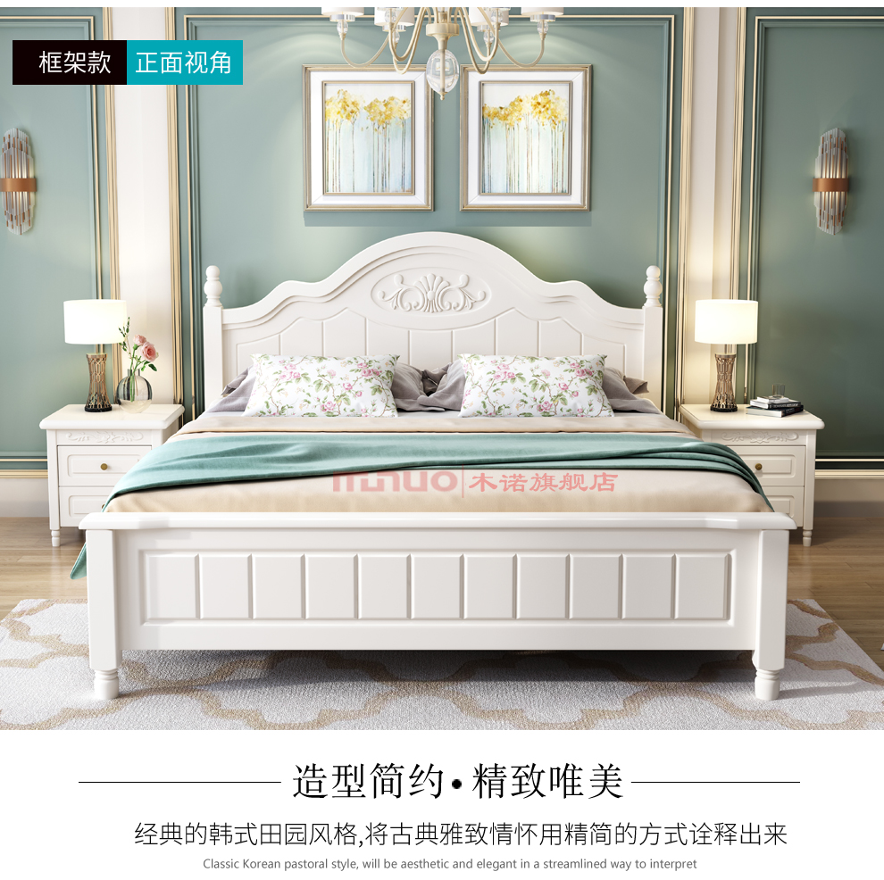 木ノアリカン纯木ベド1.8 mダンベル寝室室1.5 mプロセスト白モダシンプ韩式田园ベド洋风ベド1200*2000 mmフレネルベド