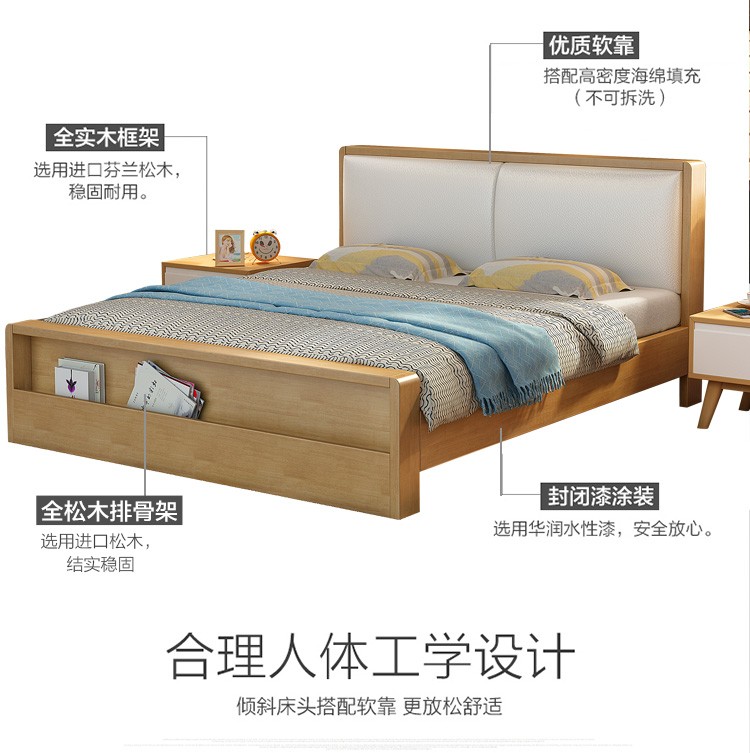 JENRS SARベト北欧風純木ベトダウン纯木木ベト1.5 m寝室室家具1.8 m大ベド原木色シゲルベッド1800 mm*2000 mm