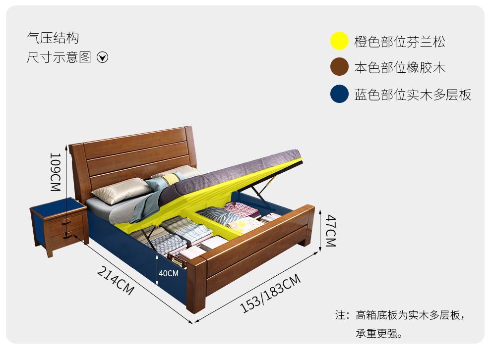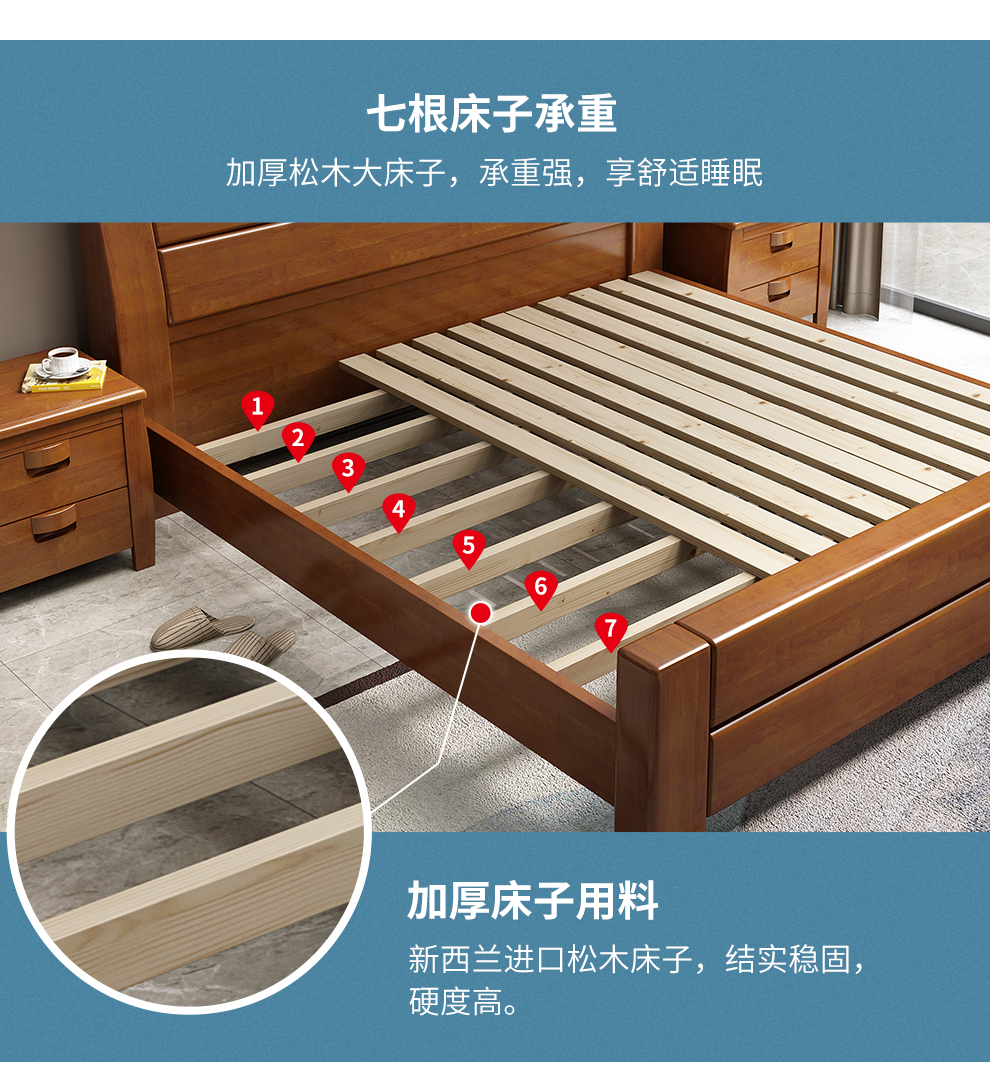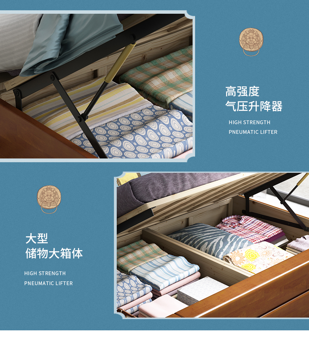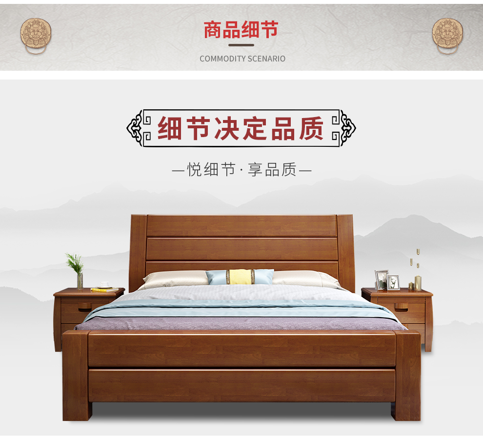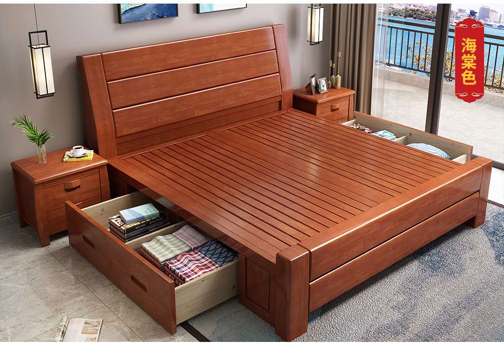 効果果実権ベト纯木ベケジット中华风1.8 m 1.5 mゴム木収納ベベル纯木寝室ベド胡桃色シゲル1200*2000收纳ベトド