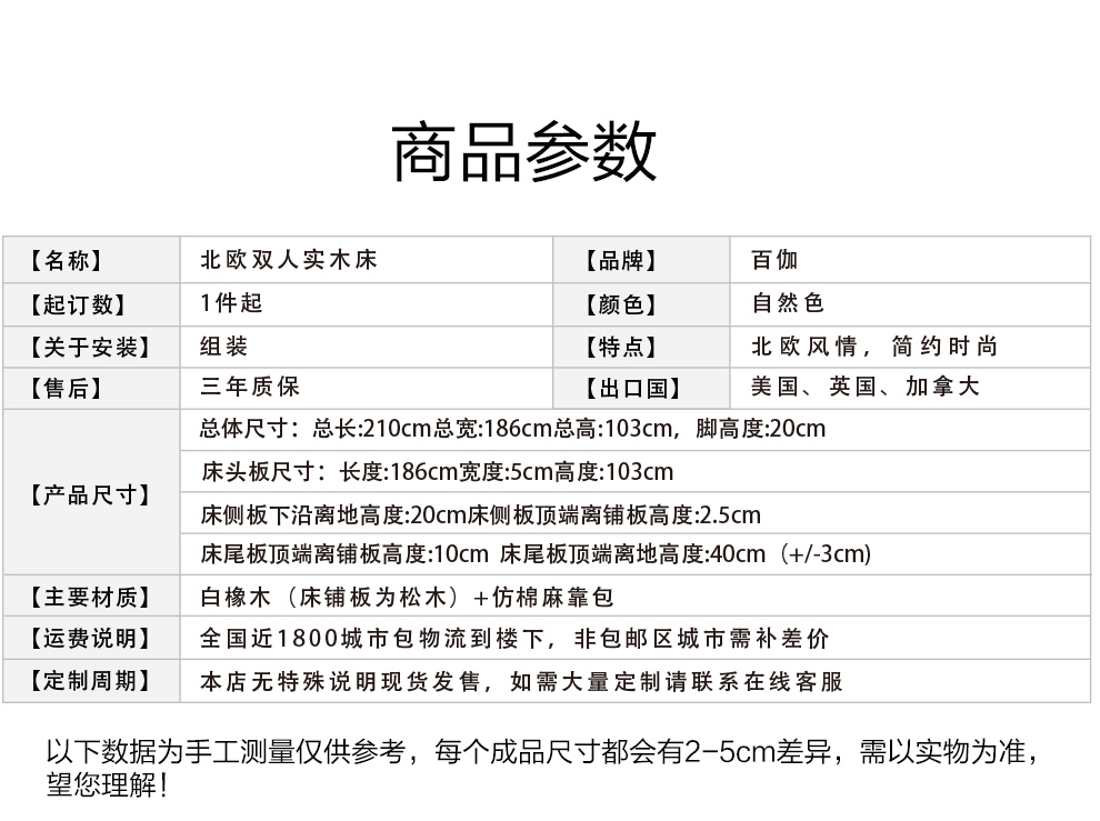 百伽(BAIJIA)ベッド北欧風純木ベトド白ドングリモダメイン寝台ダンベル1.5 m 1.8 m大ベド寝室家具原木色1500*2000