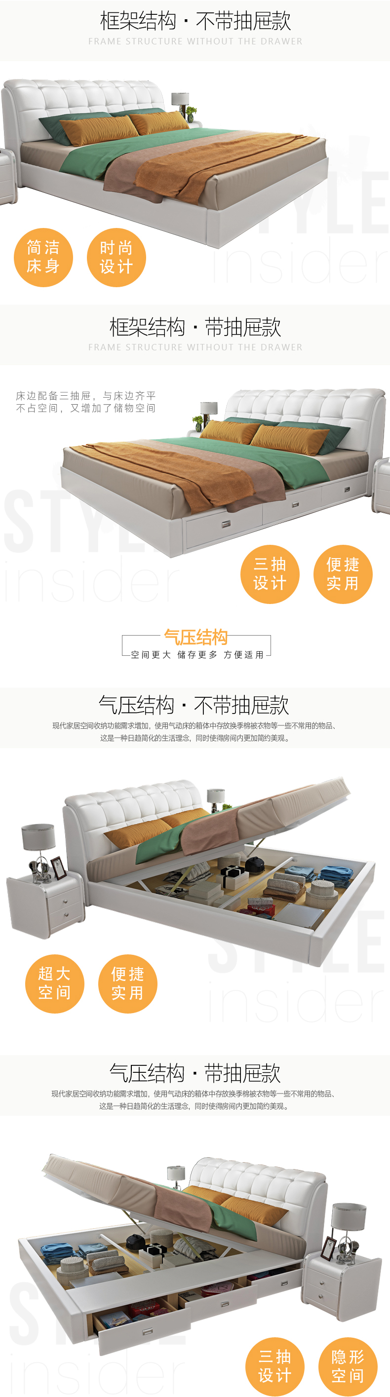 卡维蒙ベト本革ベトド大ベベル2 m 2.2 m 1.8 m収納納ベドモド+独立スティングベド+2本のベドケス2000 mm*2200 mm