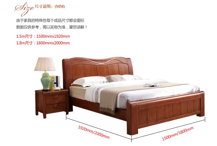 尊禾ベド中华风纯木ベベル纯木家具ダンベル新中国式1.5 m 1.8 m寝室室室室シングベド収纳ベド