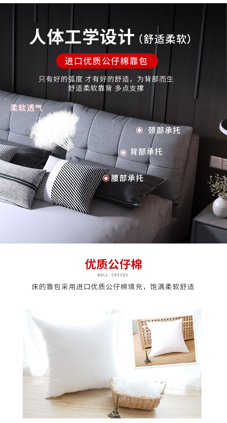 アリカフイ·ファブリック·ベッド北欧風純木ベドペアダンベル取外可能モダンシンプ·ダウド+ベッド*2+ラテックス·パッド