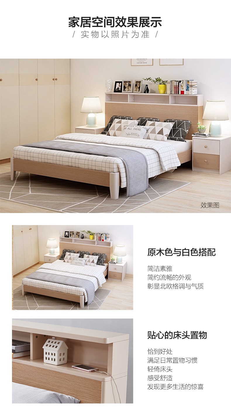 手の上の真珠の家のベトド焼きの木目のベト1.5/1.8メトルの板式の大きなベトドの寝室収纳ベトのベトドの头取纳の43板式収纳のベド+2ベドの头箱