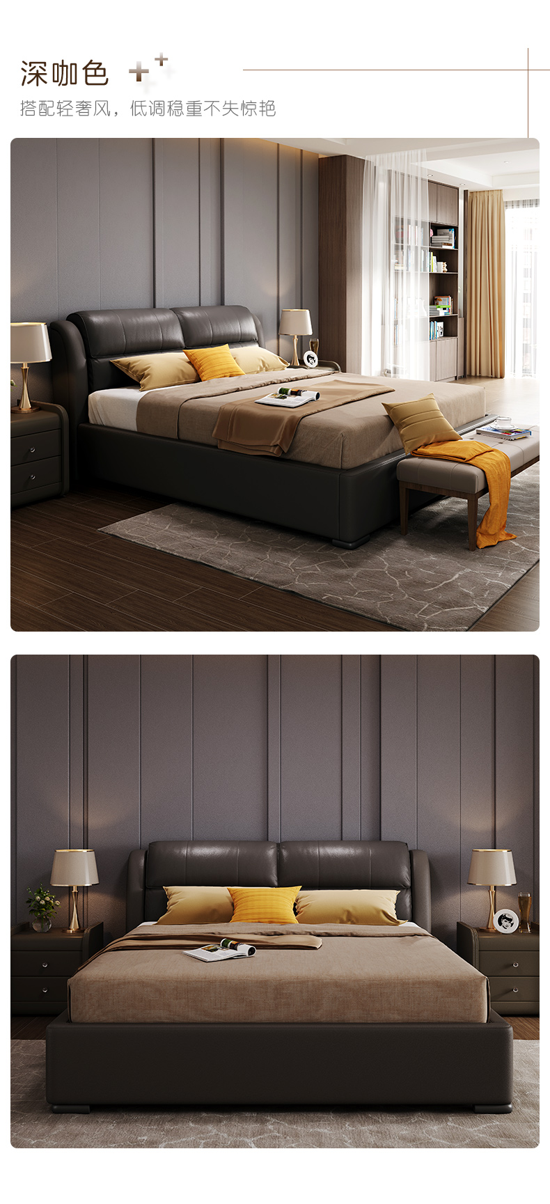 本革ベド1.8メートルC 013ベトド深カレー色1800*2000-60日出荷