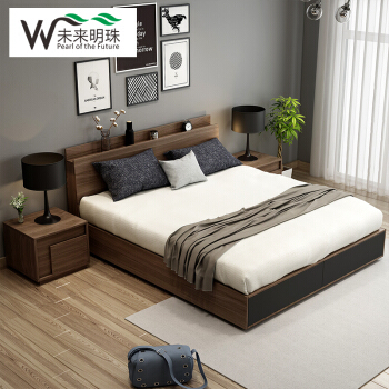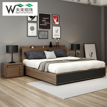 未来の明珠北欧風畳1.8 mモダシンプ日本式1.5 m寝室板式小型戸型収納ベド+ベド棚*2 1800*2000