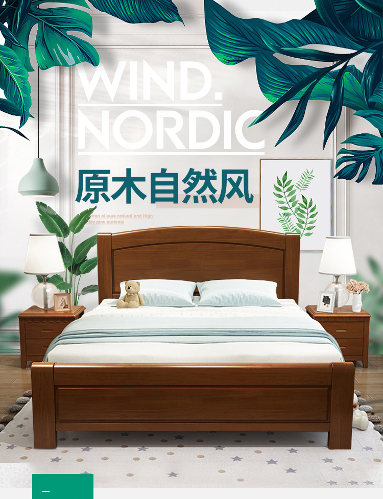 中偉北欧風純木ベトド成人ベドインインビルムベド·リンシンド1.5 mモダリング木家具胡桃色
