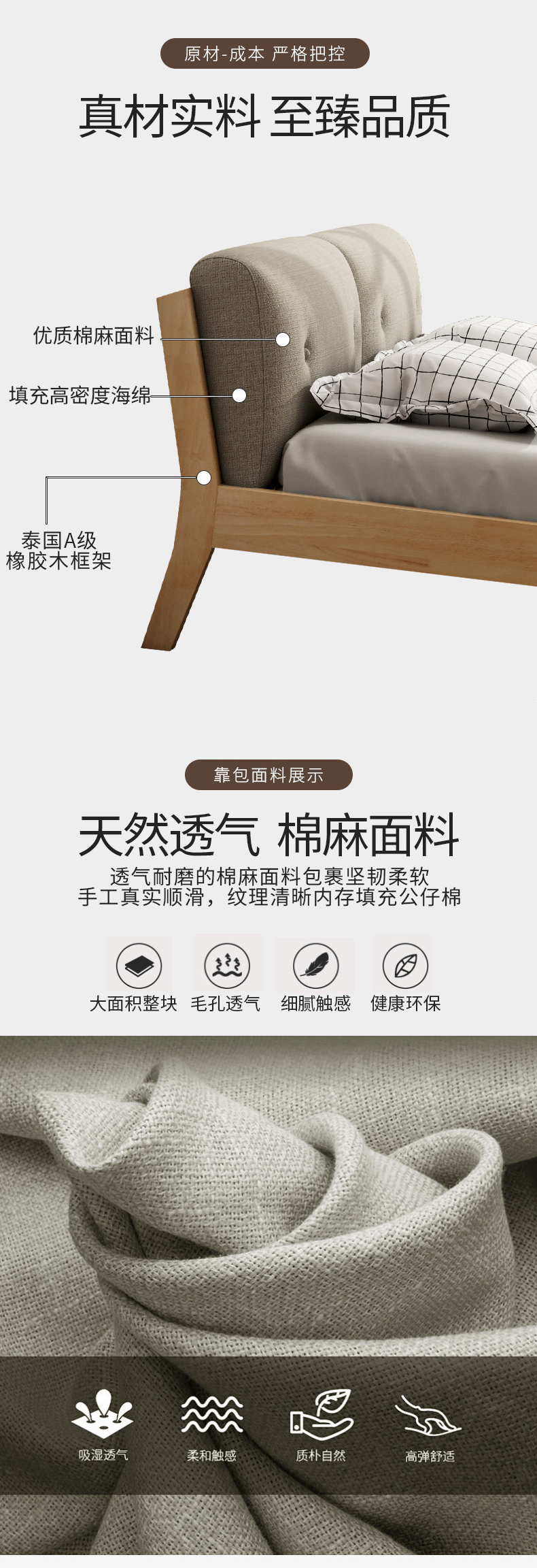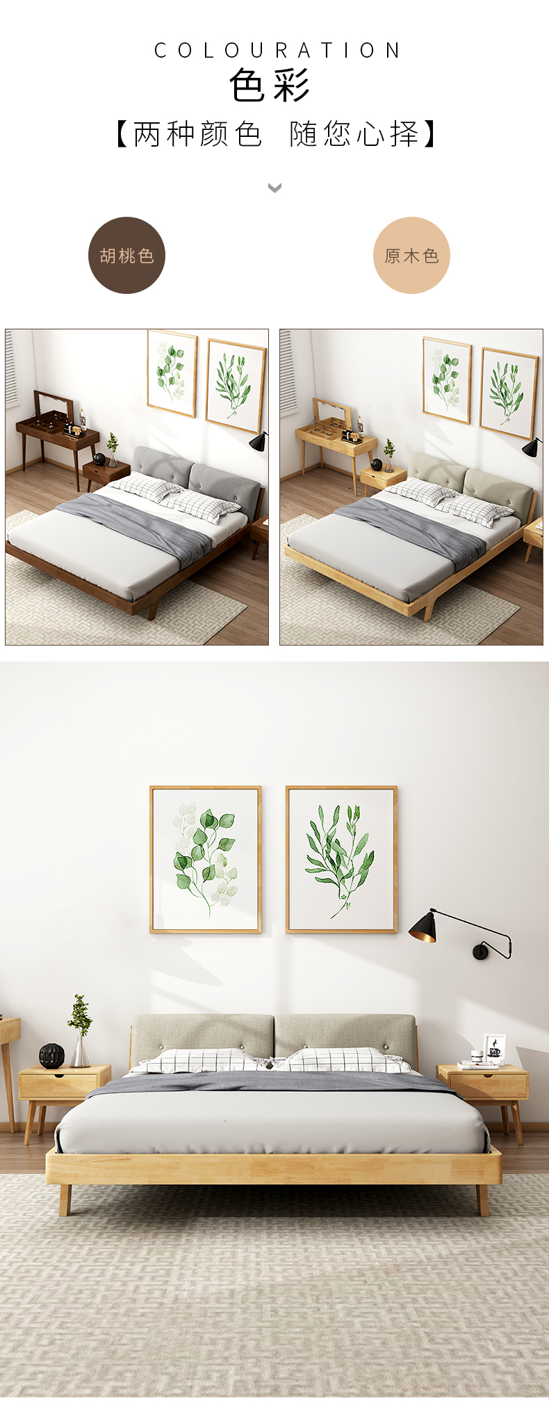 北欧风纯木ベド1.5 m 1.8 mシンプロ寝室日本オーク経済型ダブダシリーズシリーズシリーズシリーズシリーズシリーズシリーズベド原木スタイルベド原木色纯木ベド1500 mm*2000 mm