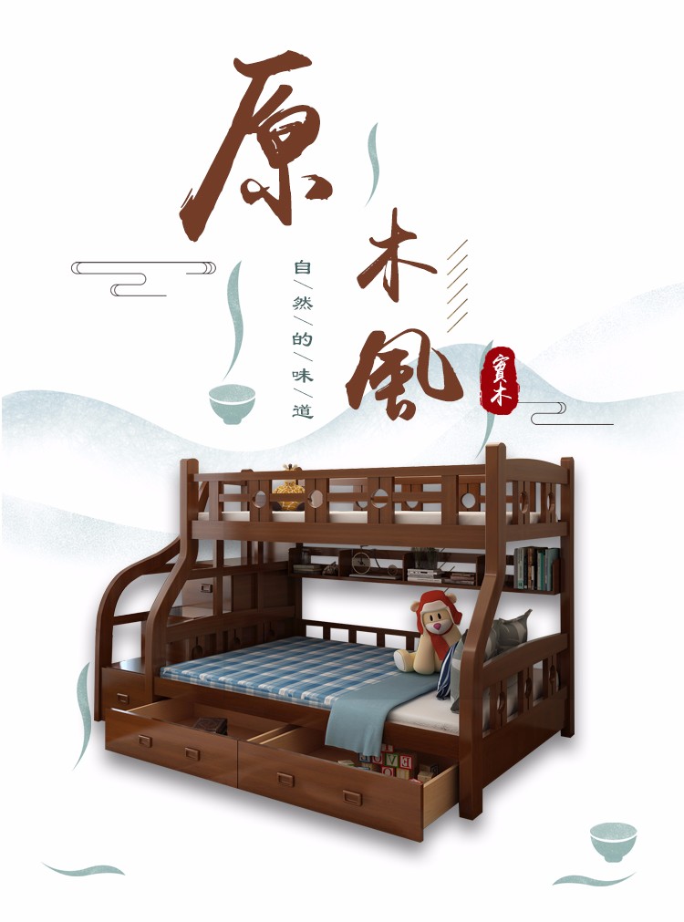 迪純家具上下ベド母子ベド純木二段高高高高高高高高高高高高高高高高高高低ベド中華風二段ベド純木ベド安全ガジェットド多機能ベド+本棚+段+二抽(胡桃色)1500*2000