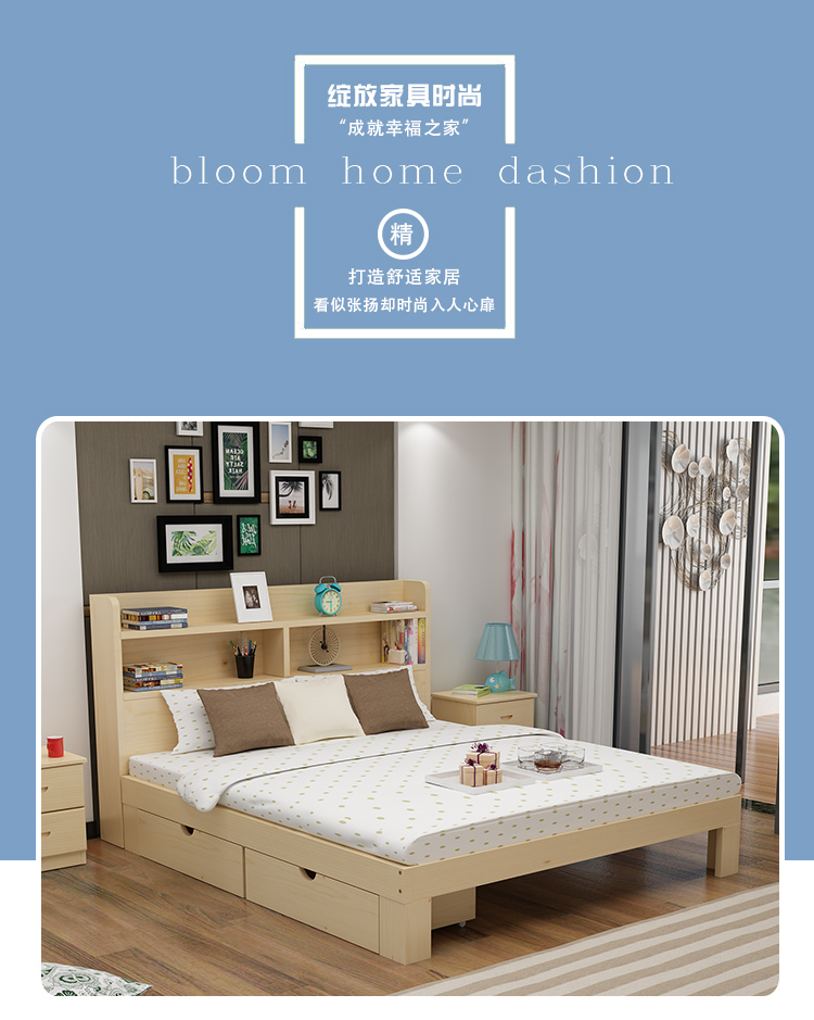 纯木ベト子供ベトトリ男の子の子シングベド1.2 m 1.5 mダンベル本棚ベト原木无漆ベド+2引出し+5 cm厚コナキャップ