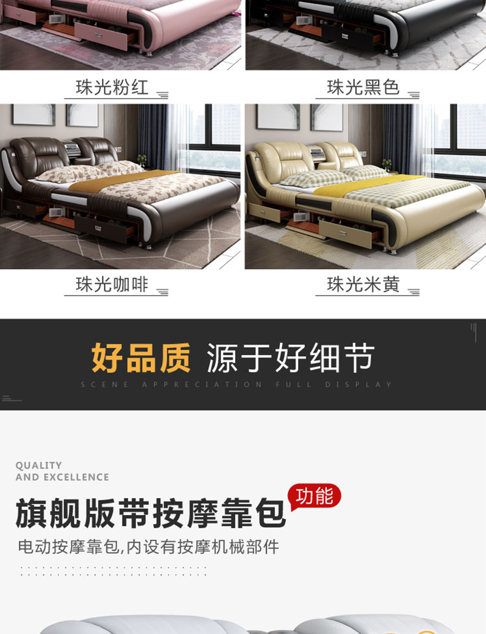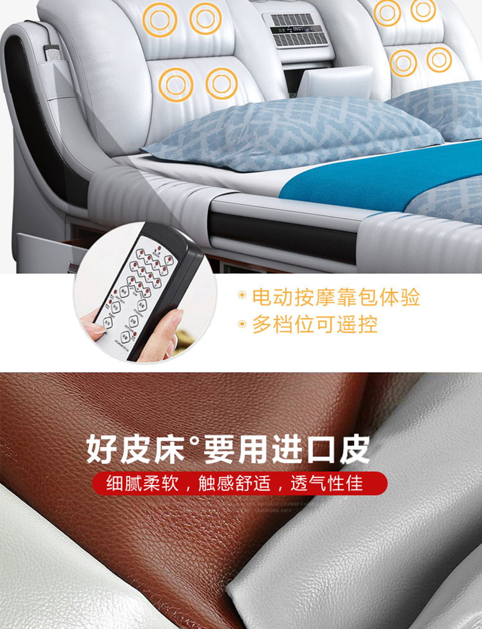 柚巣革制ベト本革ベドの新型知能マルサ音响空气浄化器ダンベル多机能1.8メテルの寝室に引出してきたドレッサーベド1800*2000普通版+ラテスト+2箱