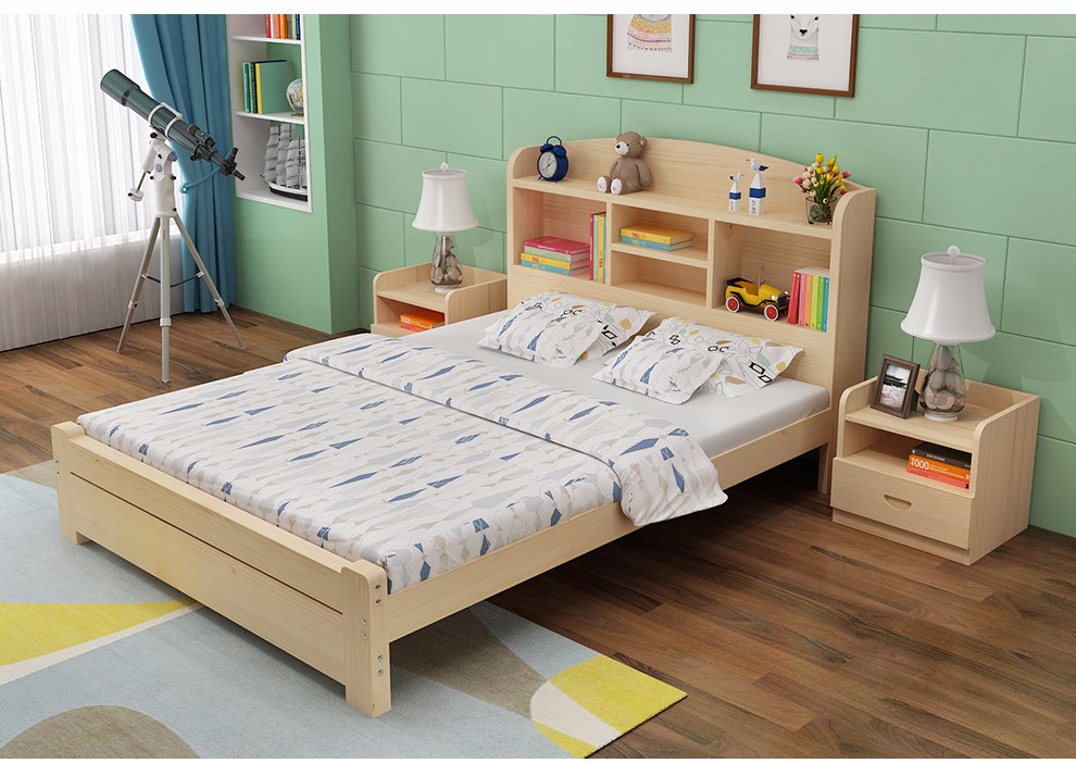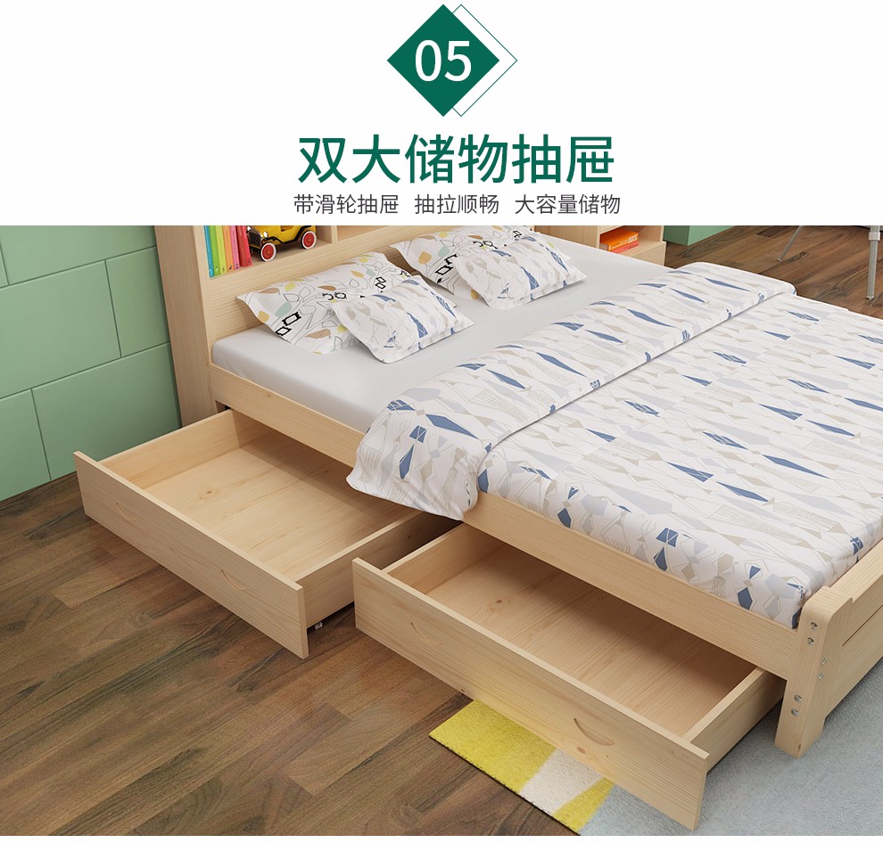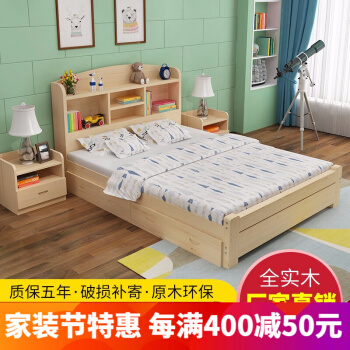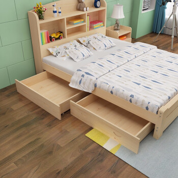 千鵬(QIANPENG)ベッド純木ベケケケ子供供ベド洋風ベケジットベトベケット1.2 m 1.5 m 1.8 mベドベッドルーム収纳ベド原木無漆ベド1 m*1.9 m