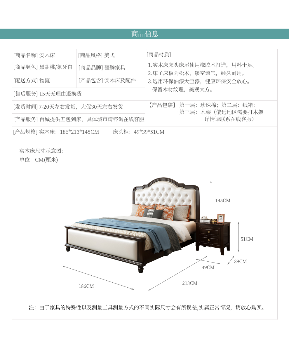 疆騰ベト洋風純木ベト1.8 m寝室家具引出しダンプの邪魔沢アリカーンベルジッド1.5 m収納したベト黒胡桃色1.8 m普通ベトド