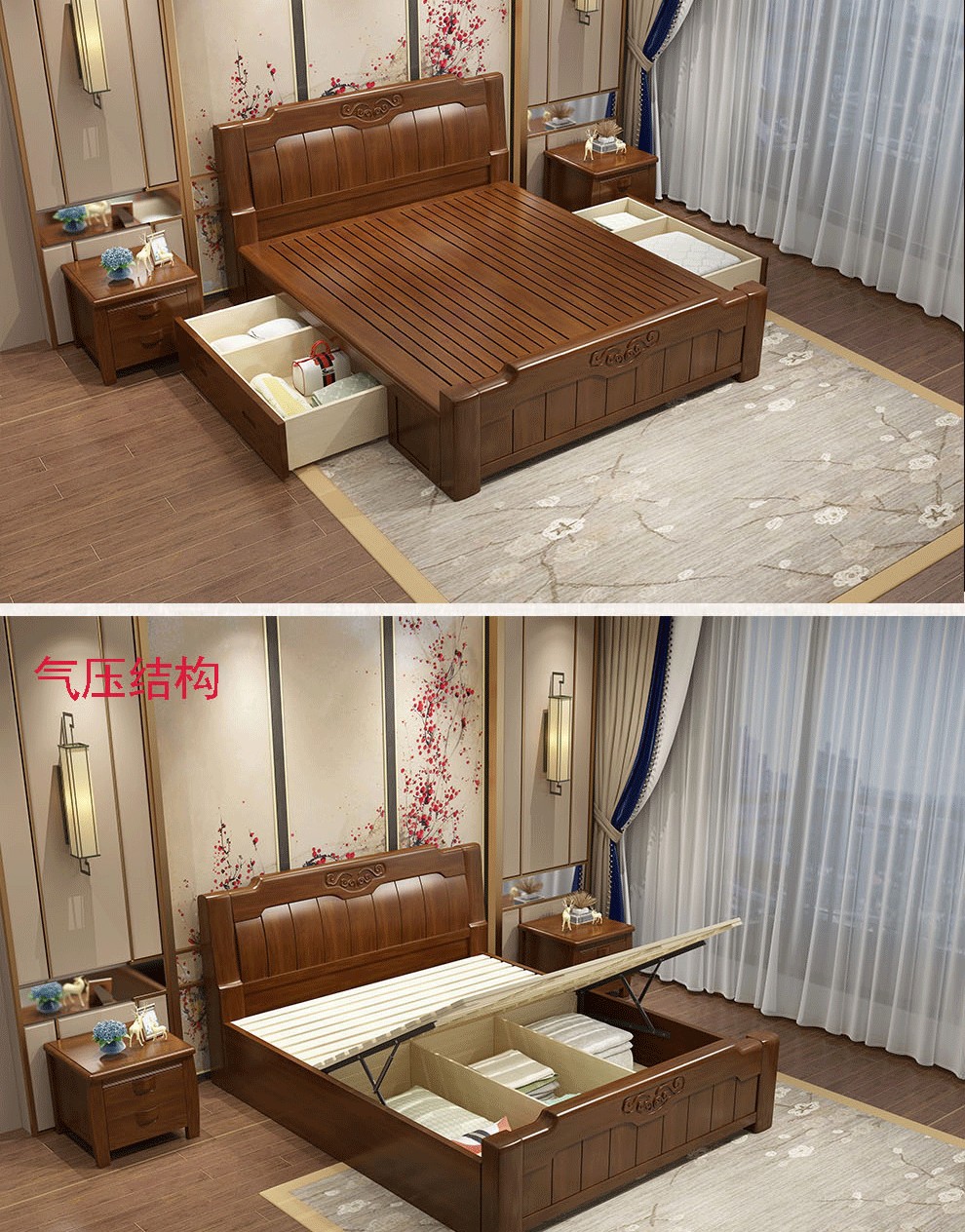 明巧匠ベド純木ベトド中華風ゴム木ベト1500*2000(フレム構造)